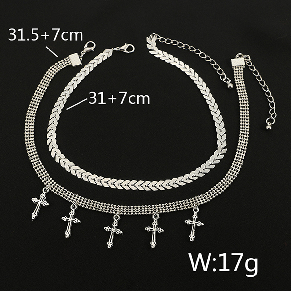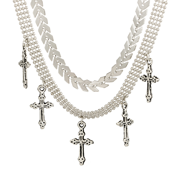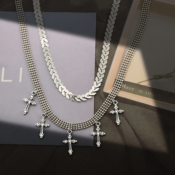 silver tone,decorated with cross pendant,chic and unique. Double-layer style,this necklace is a good way to