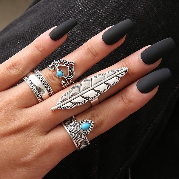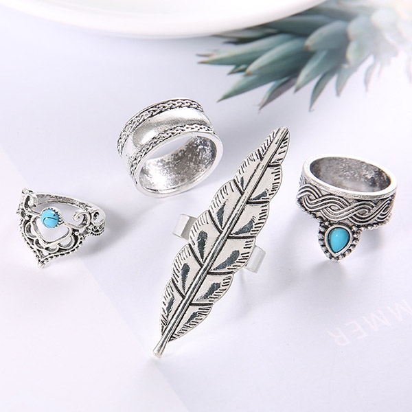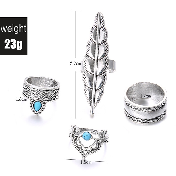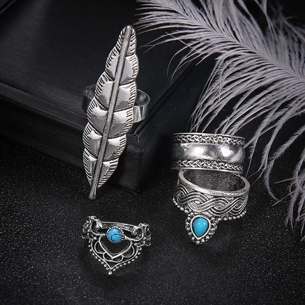 This ring set comes with a retro yet stylish silver tone,including 4 pieces different shaped rings like