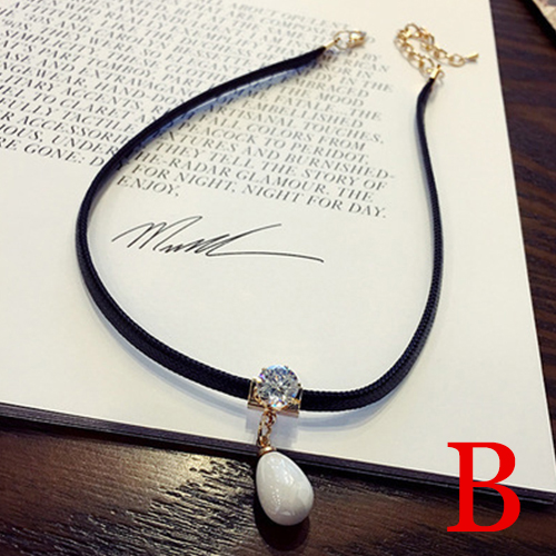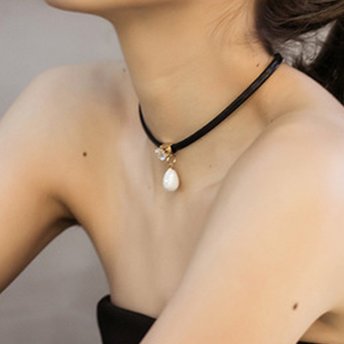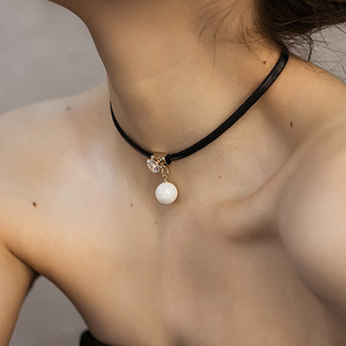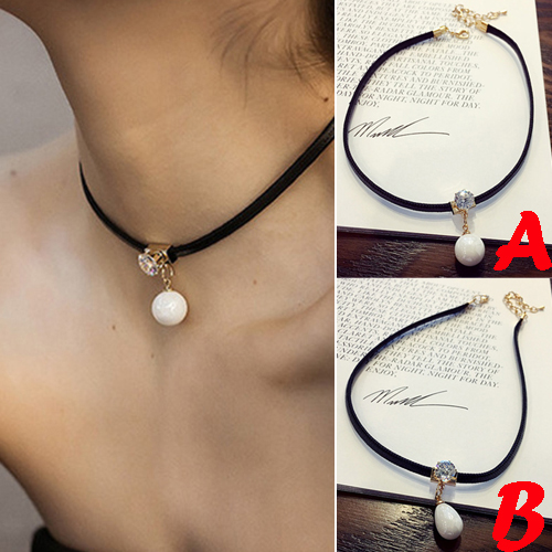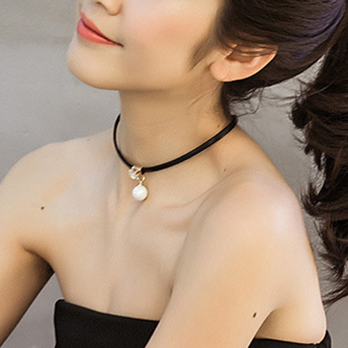 Fashion Crystal Pearl Pendant Choker Necklace