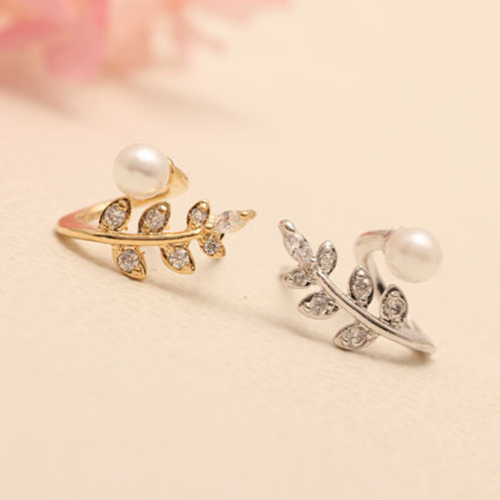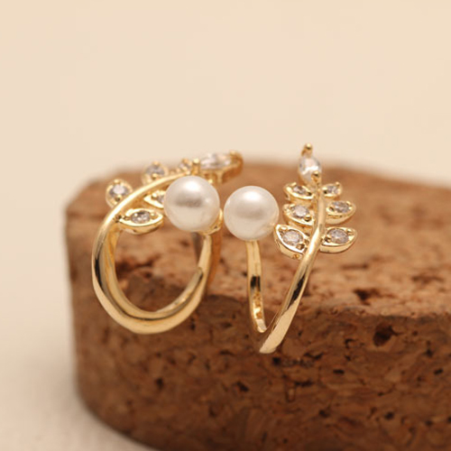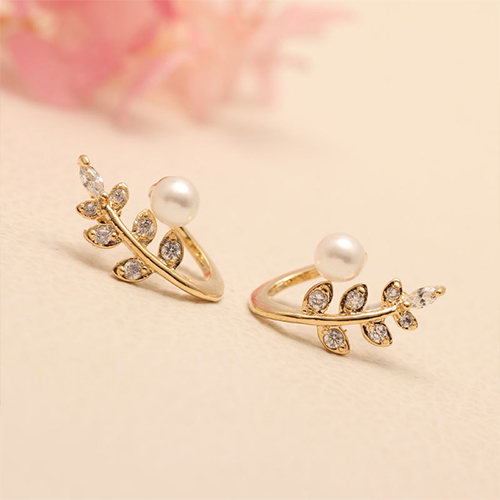 The leaf shaped earring can give people a fresh and stylish look. It is completed with pearl and rhinestone patterns, delicate