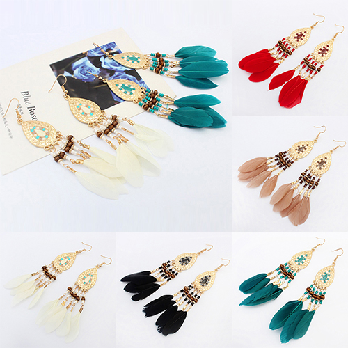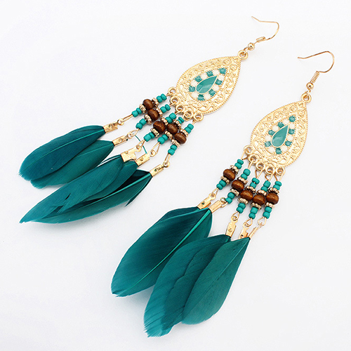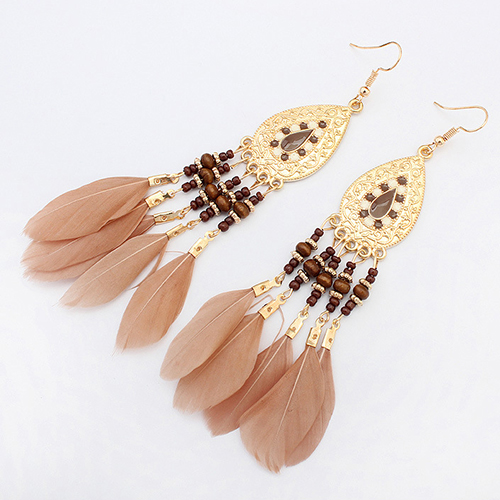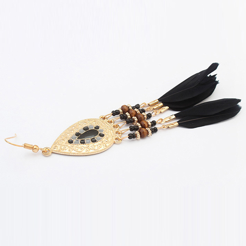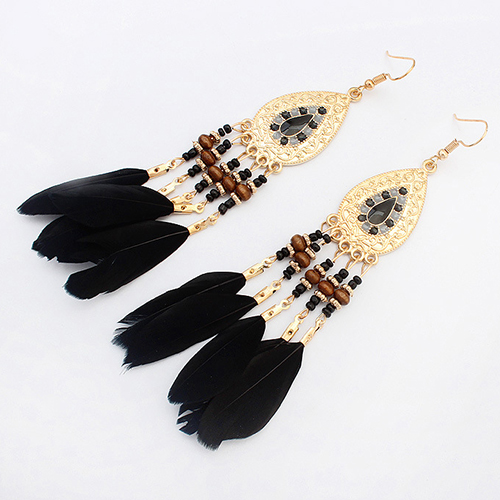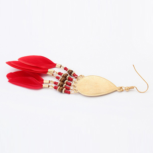 The earring is completed with oval feather shaped patterns, with tassel pendant design, unique and stylish.
