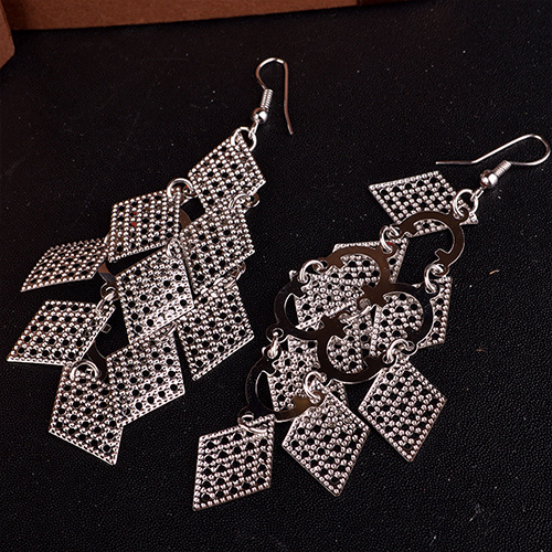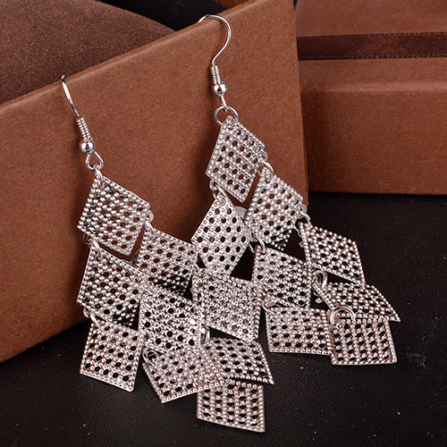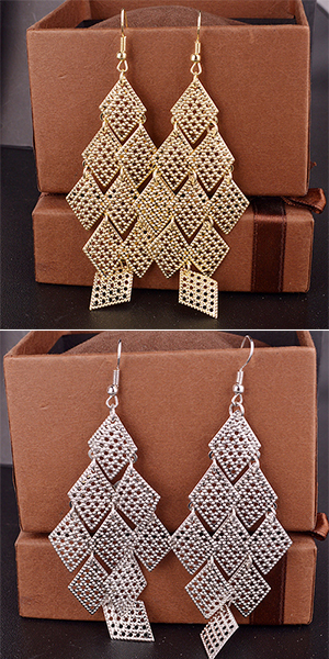 Fashion Diamond-Shaped Tiered Cutout Filigree Chandelier Earrings