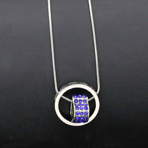 This pendant necklace is styled with double-layer shaped design and crystal patterns,