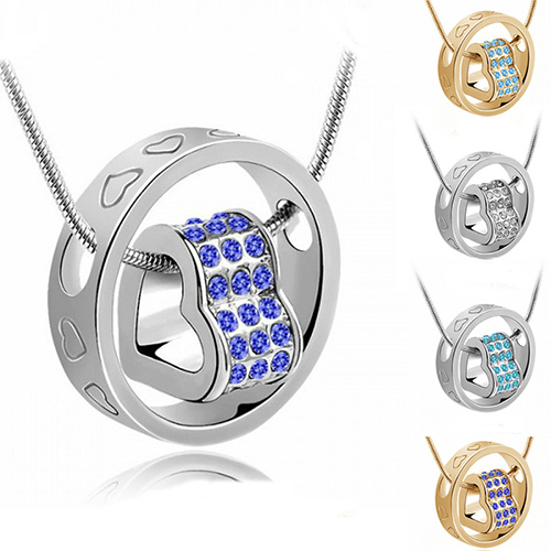 Fashion Double-layer Love Shaped Crystal Pendant Necklace