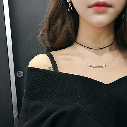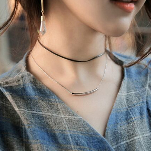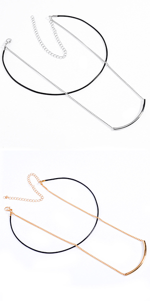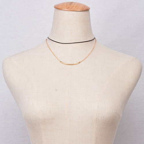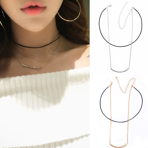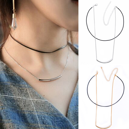 Fashion Double-Layered Metal Curved Bar Choker Necklace