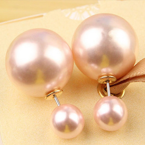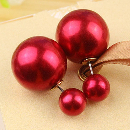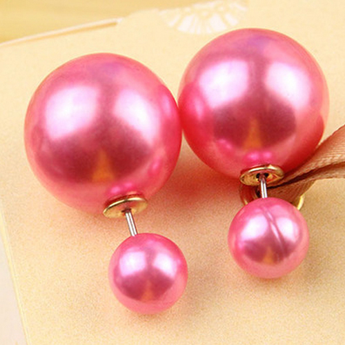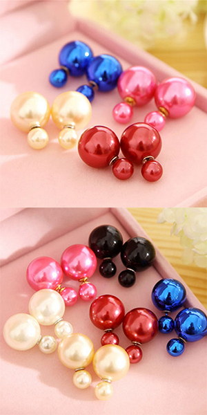 Our double sides’ faux pearl studs complete with solid color accents are just the thing