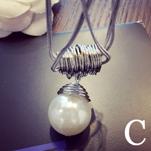 Fashion Drop Pearl Crystal Pendant Sweater Necklace