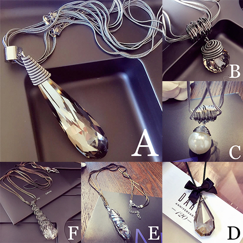 ensemble. So we prepare various different styles of necklaces for you. Crystal, pearl and