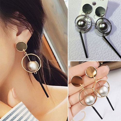 Fashion Elegant Balls Circle Shaped Pendant Stud Earring