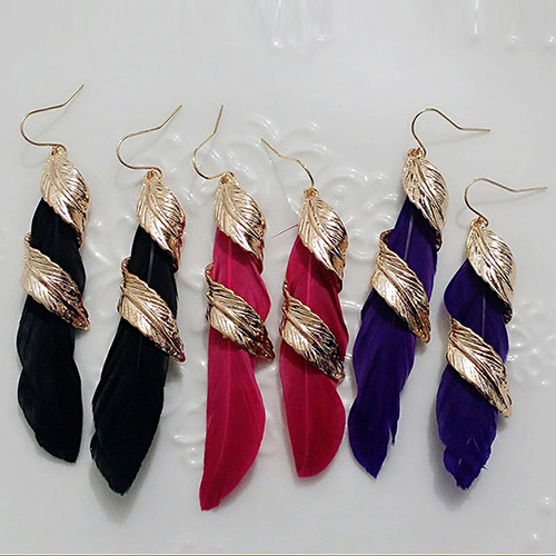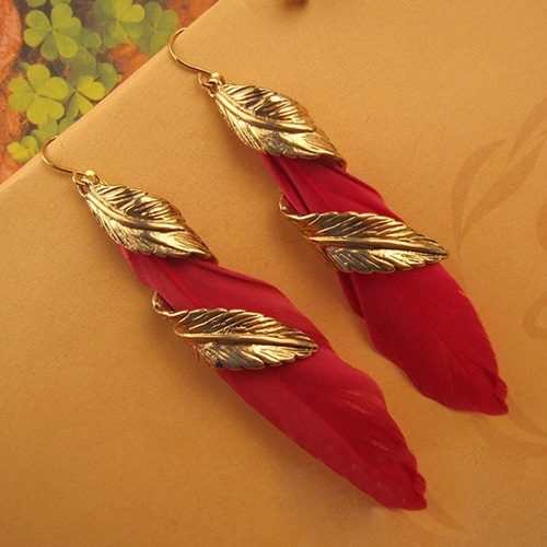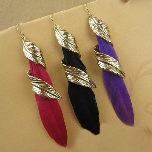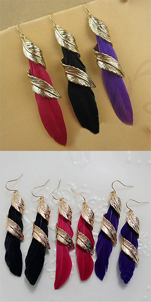 twining faux feather and a fish hook back. Try wearing it and hear what your friends say.