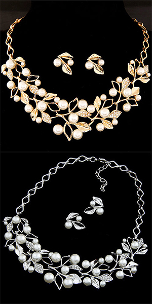 This beautiful jewelry set included a necklace and studs. It features branch shaped,