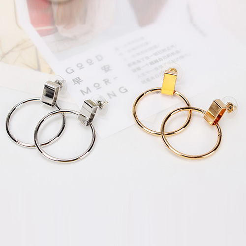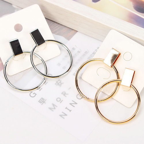 unique and exaggerated design. The earring is styled with big circle patterns, stylish