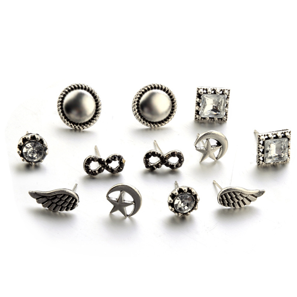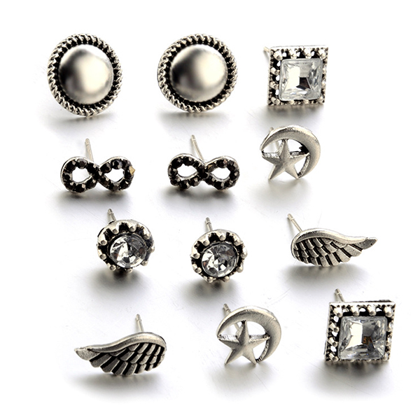 If you have this stud earring set on hand,you can wear a pair of different shaped stud earrings every several days.
