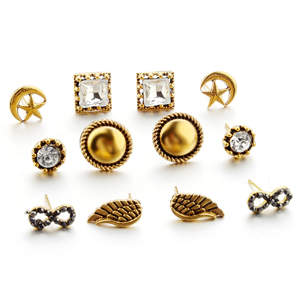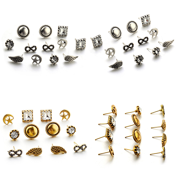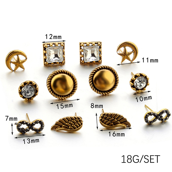 Features classic gold and silver tone,including 6 pair of different shaped stud earrings,these stud earring