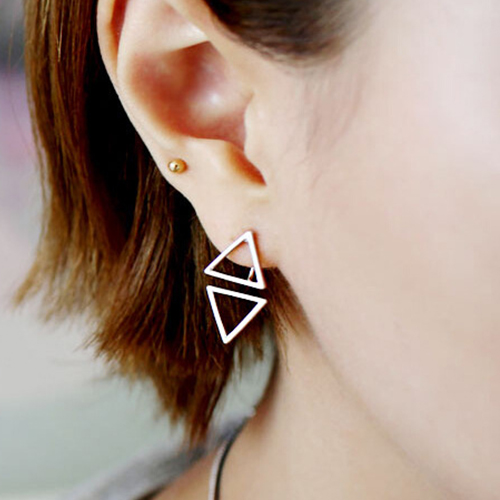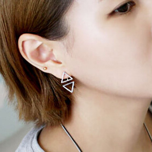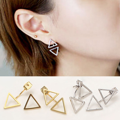 out triangle design makes it look more chic. Finish your makeup with these stud earrings.