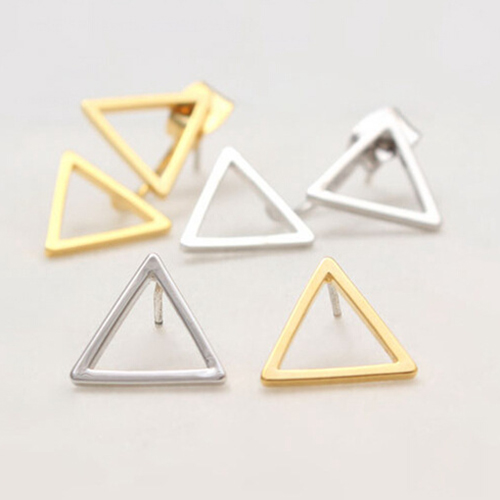 Fashion Gold/Silver-tone Hollow Out Triangle Stud Earrings