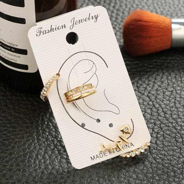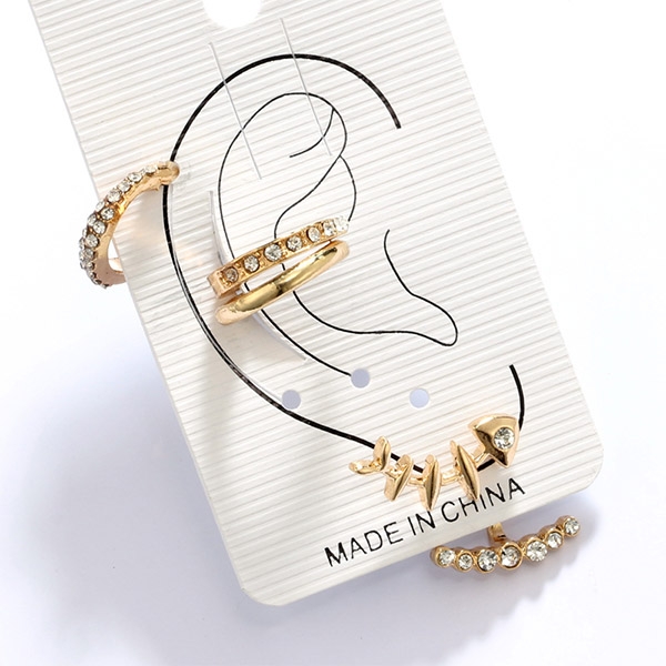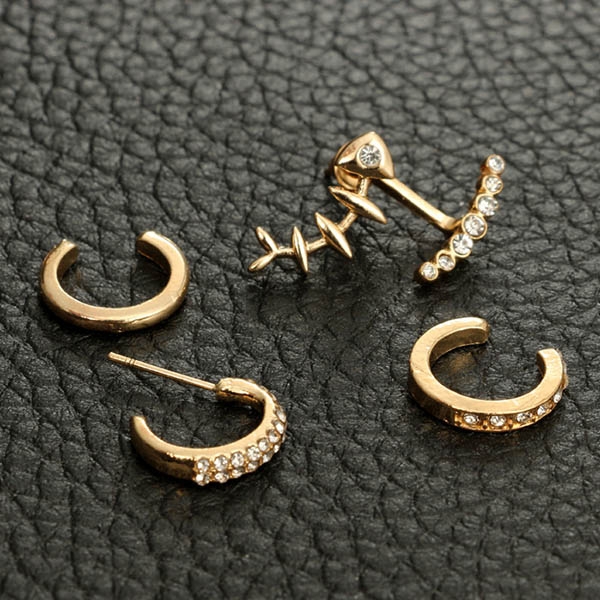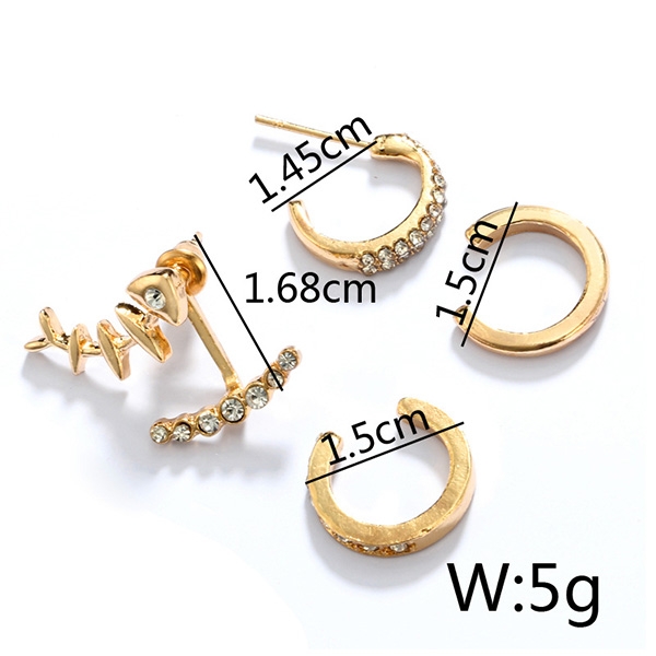 Fashion Gold-tone Alloy Fishbone Rhinestone Stud Earring Set 5 pcs/Set
