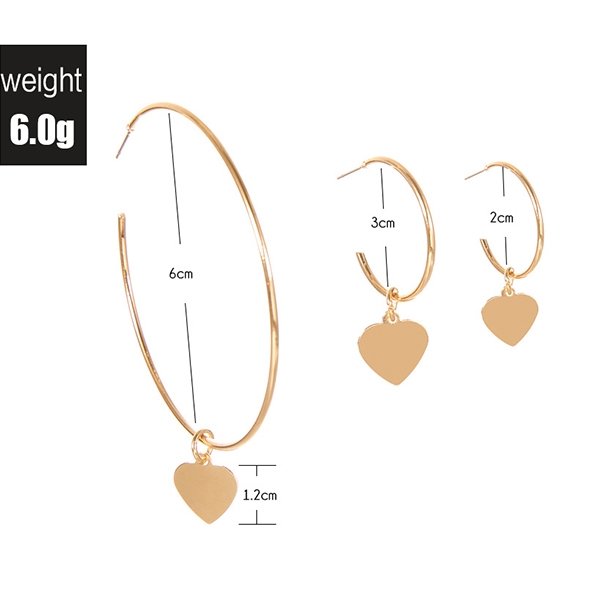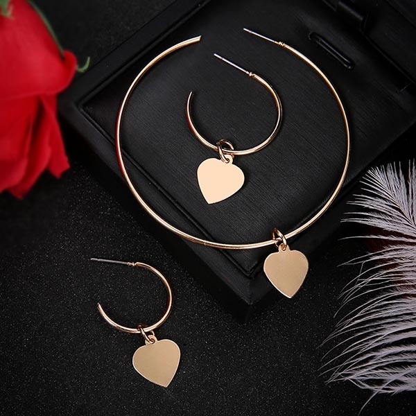 Fashion Gold-tone Heart Pendant O-shaped Earring Set 3 pcs/Set