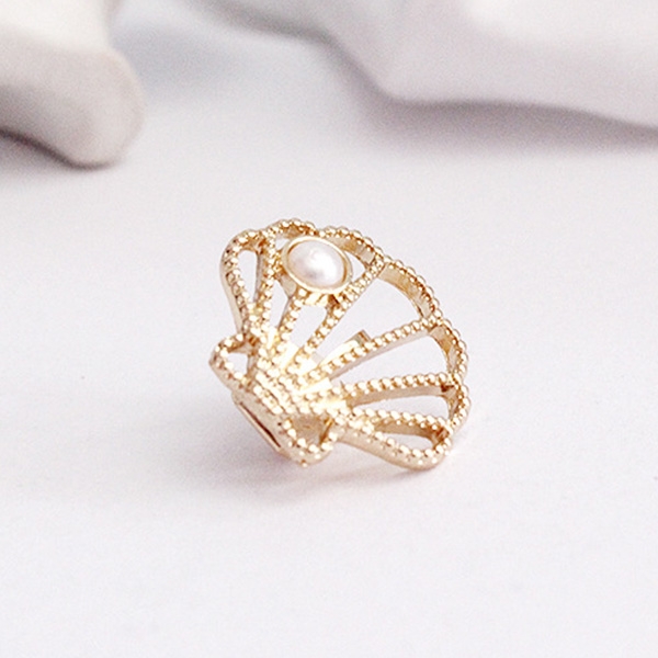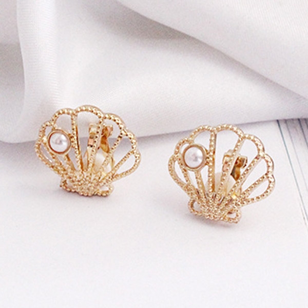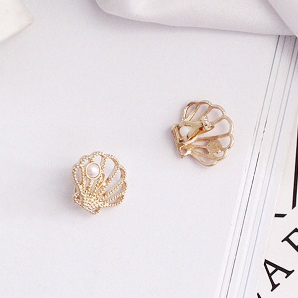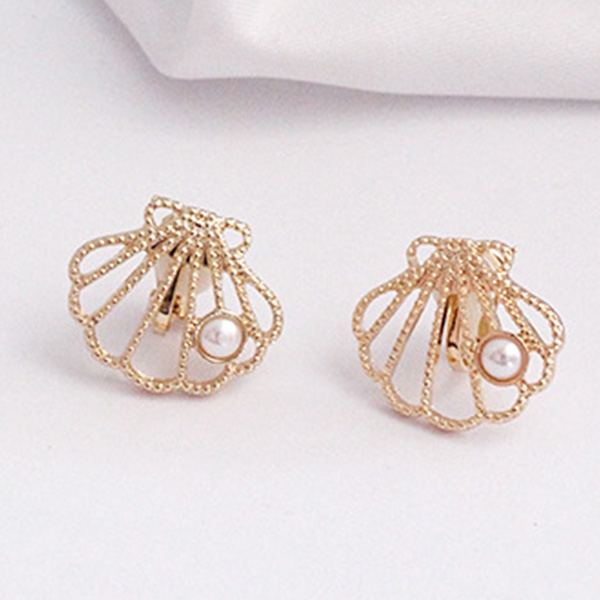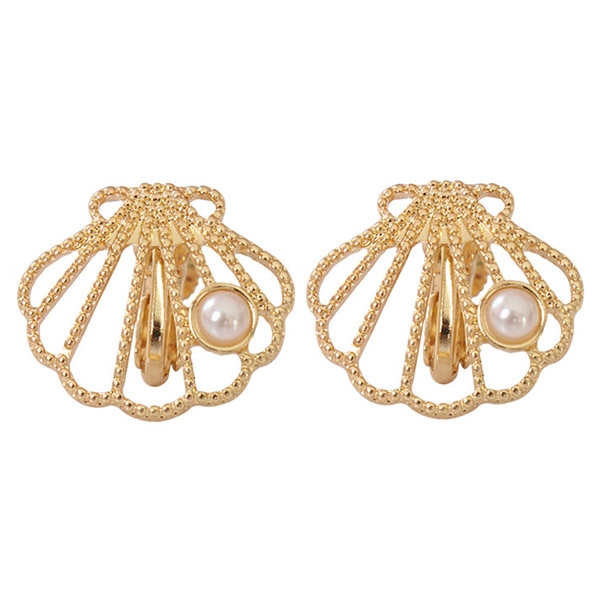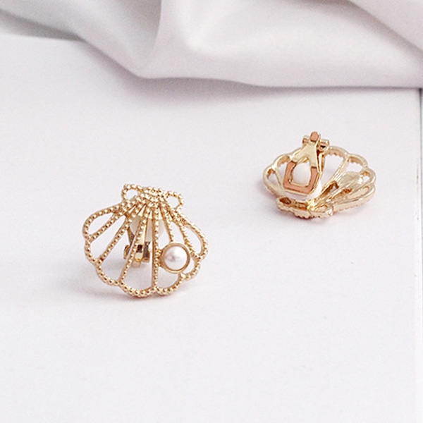 Fashion Imitation Pearl Inlaid Shell Shaped Ear Clips