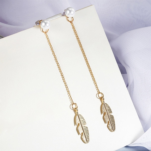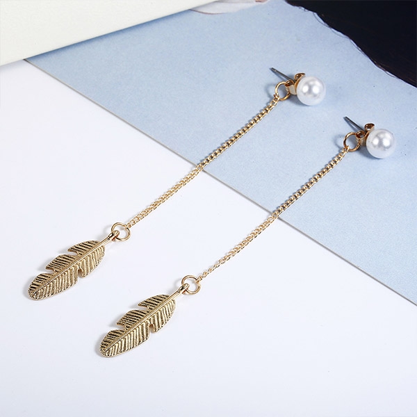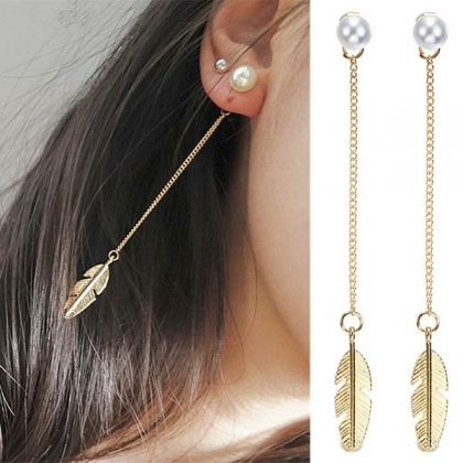leaf pendant and pearls details,this pair of tassel earrings can make you look more beautiful.