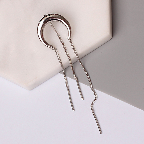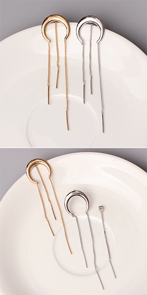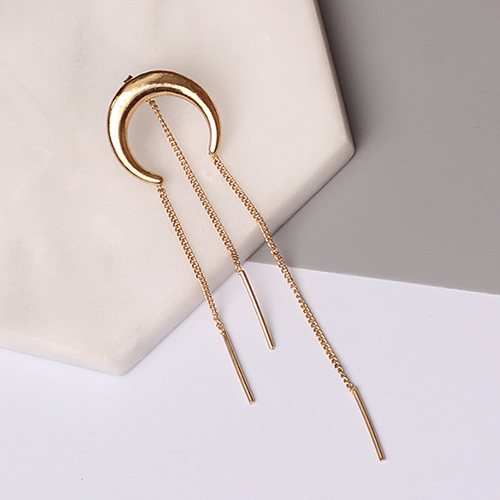 The earring is so special and stylish. It is decorated with moon arc shaped design and long tassel pendant