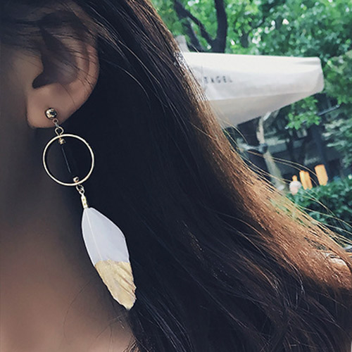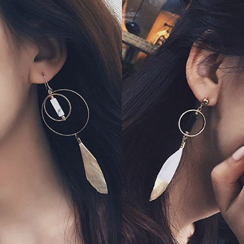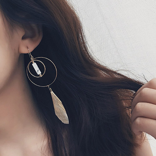 Fashion Natural Stone Donut Feather Shaped Pendant Earring