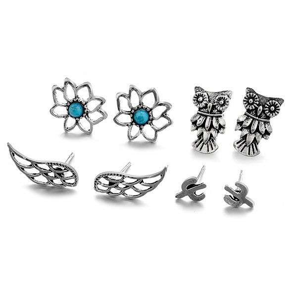 This stud earring set consists of 4 pairs of different shaped stud earrings like owl shaped,wing shaped,