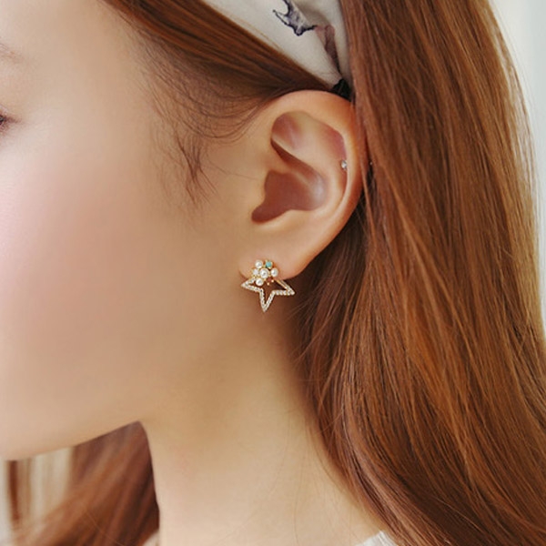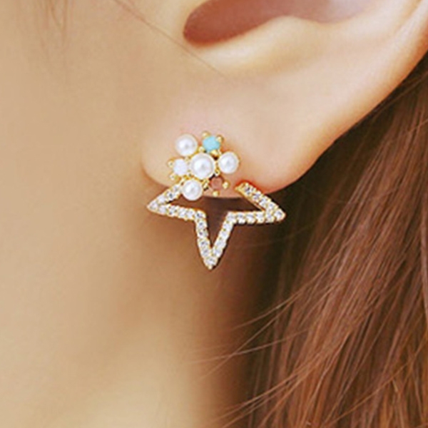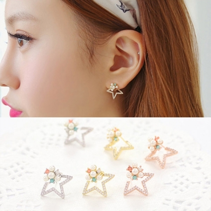Fashion Pearl Inlaid Pentagram Shaped Stud Earrings