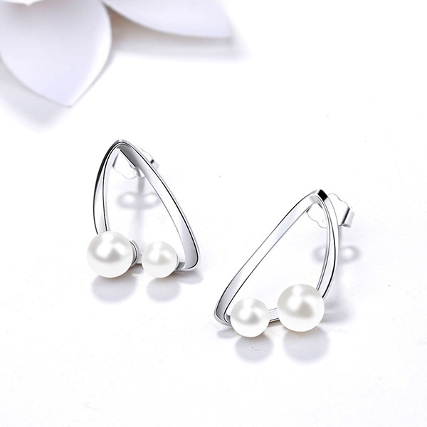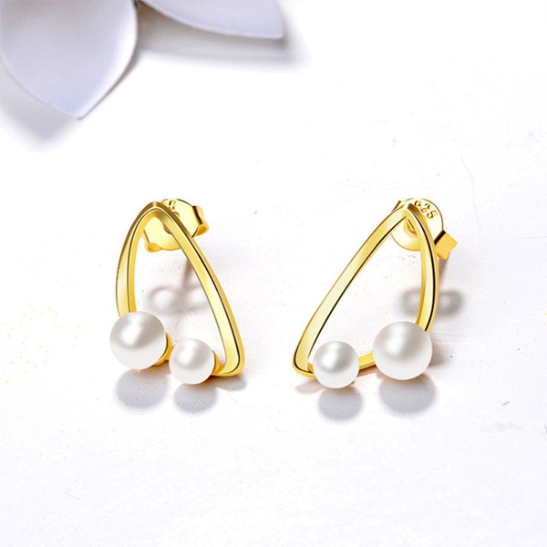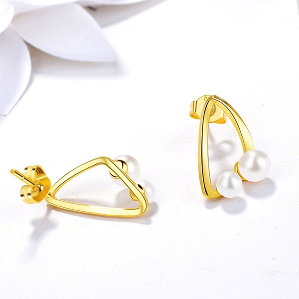 Fashion Pearl Inlaid Triangle-shaped Stud Earrings