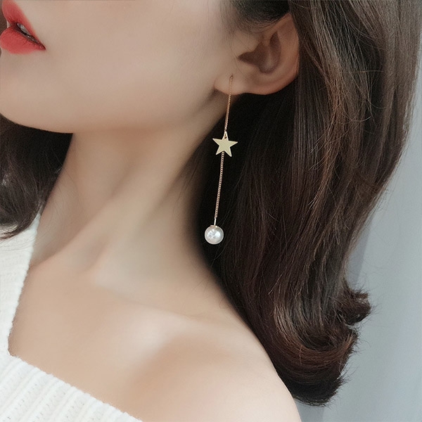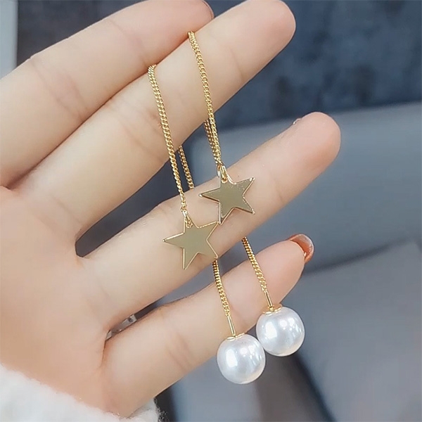 Fashion Pearl Pentagram Pendant Earrings