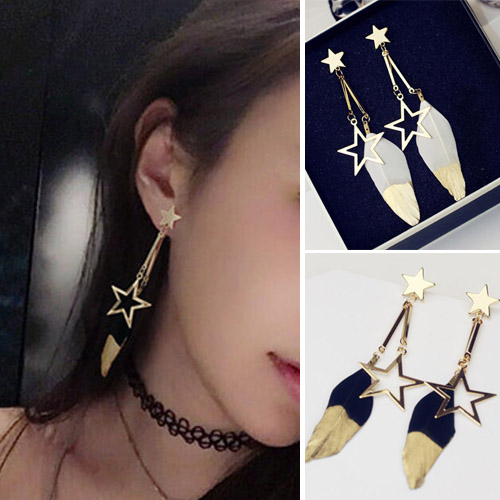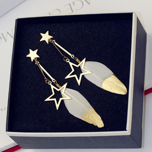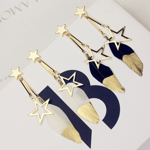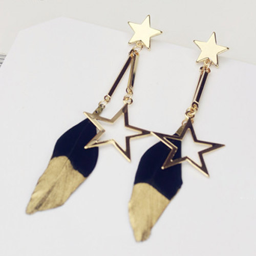 Fashion Pentagram Feather Shaped Tassel Pendant Earring