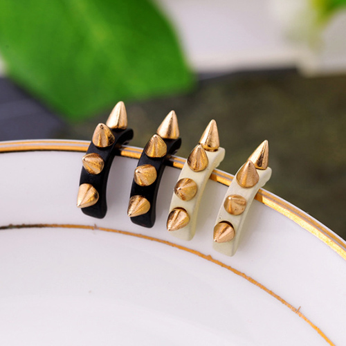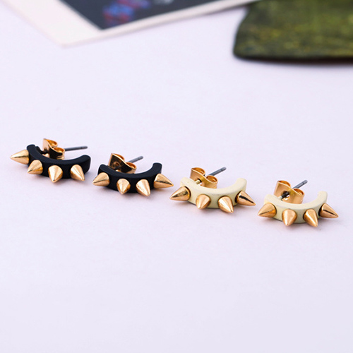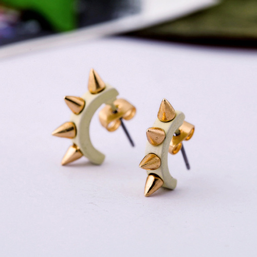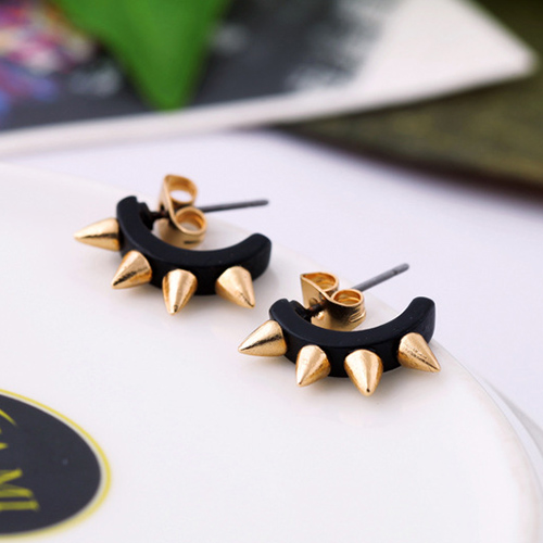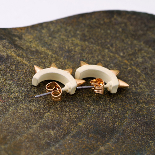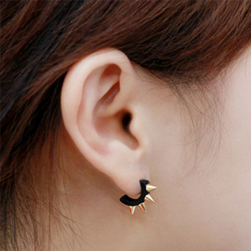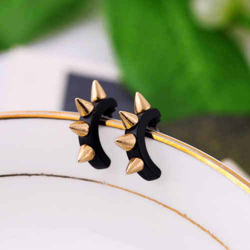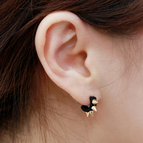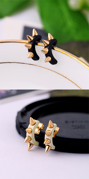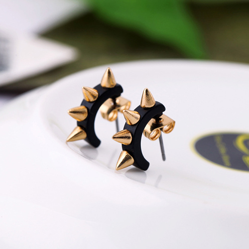 The earring features punk style, it is decorated with u-shaped design and rivet patterns, which can give