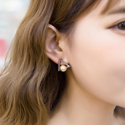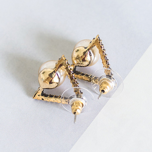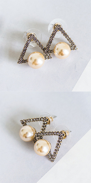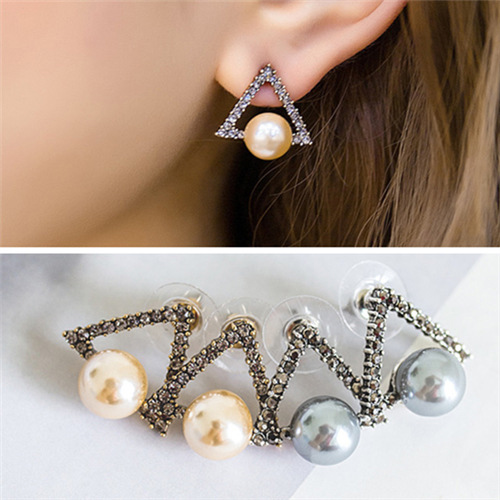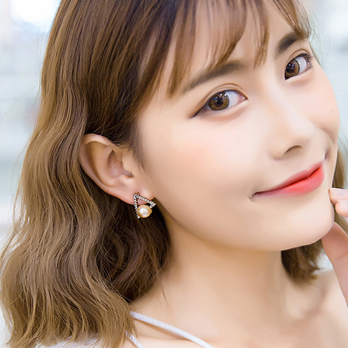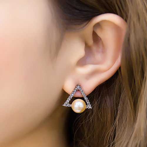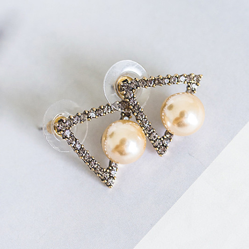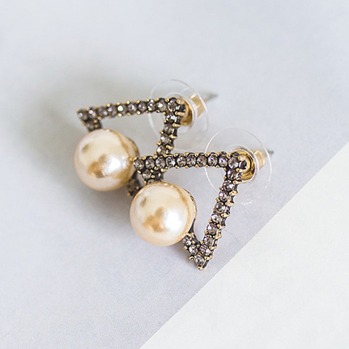 Fashion Retro All-match Triangle Shaped Pearl Stud Earring