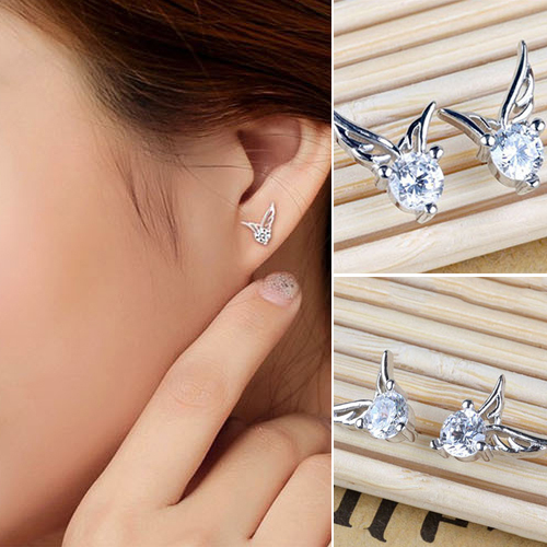 Dazzle and shine your way with these sparkle stud earrings. Angel wings shaped design,decorated with rhinestone,