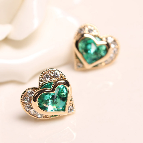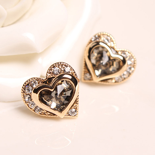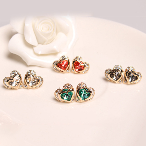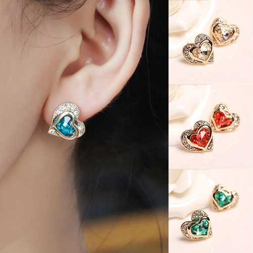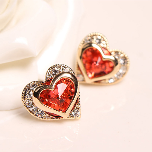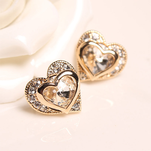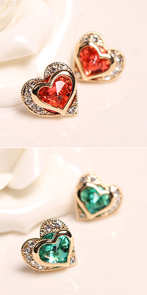 lover. This pair of earring is decorated with love shaped design, stylish and unique. Its sparkle rhinestone