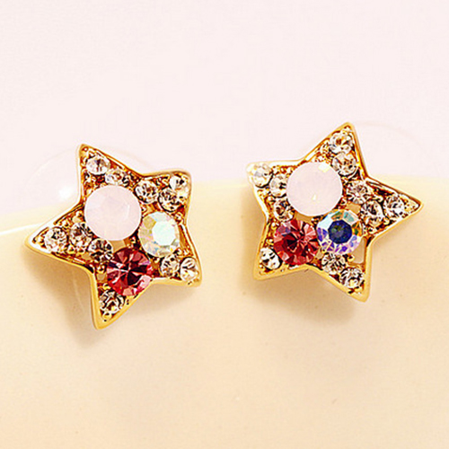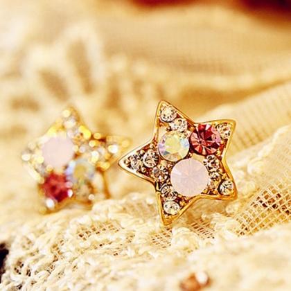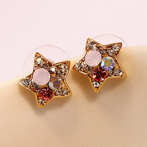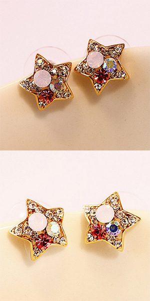 studs features star-shaped, colorful rhinestone encrusted and post back.