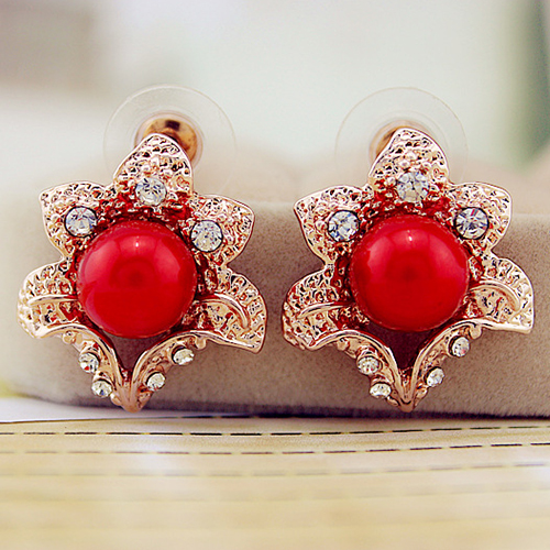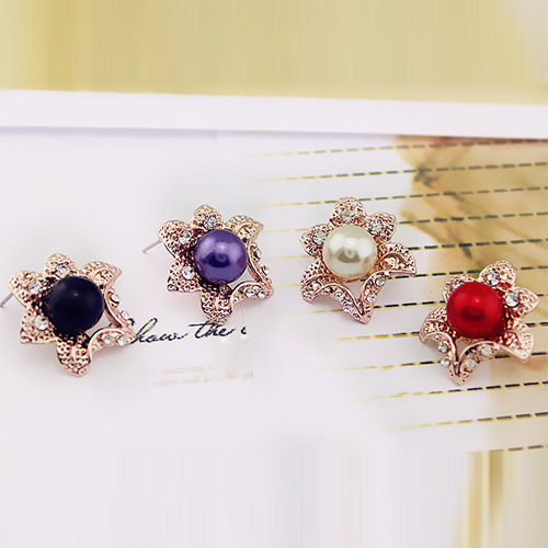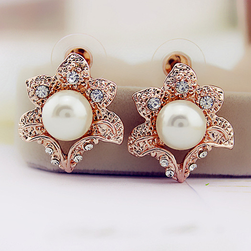 Fashion Rhinestone Flower-shaped Pearl Stud Earrings