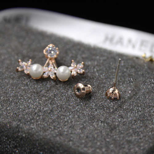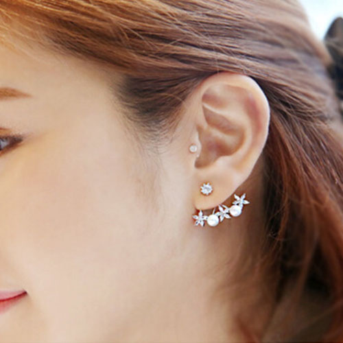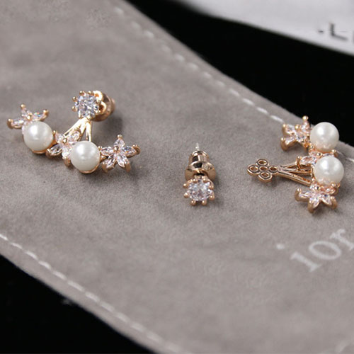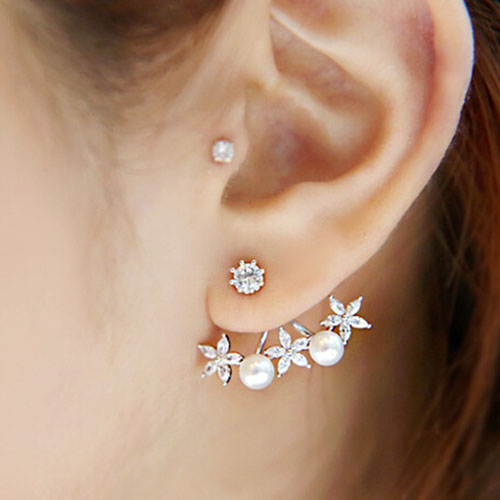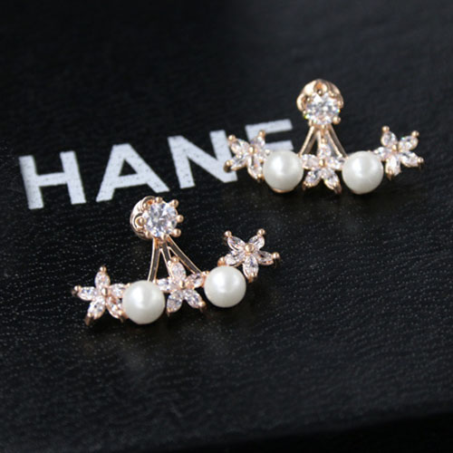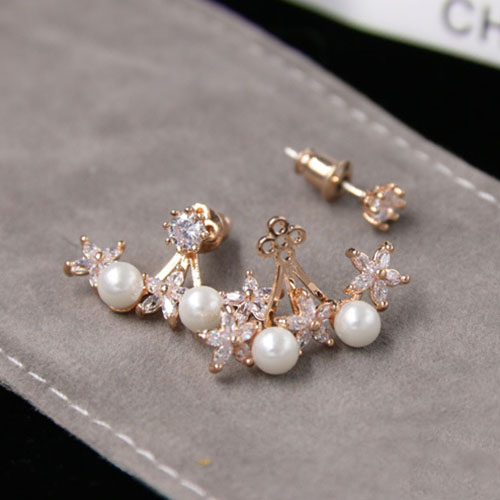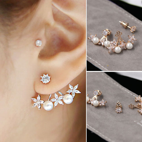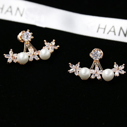 Fashion Rhinestone Flowers Pearl Stud Earrings