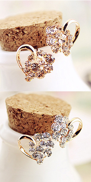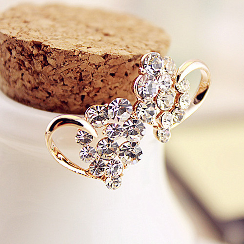 Fashion Rhinestone Heart Shaped Stud Earrings