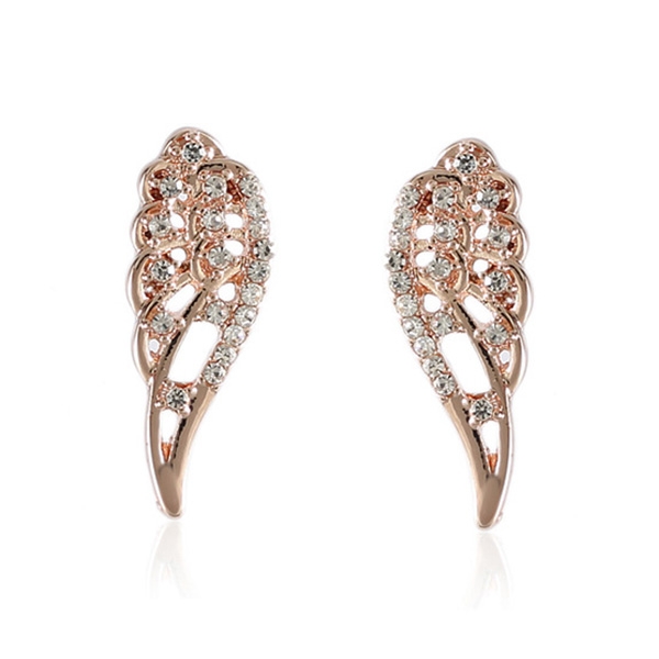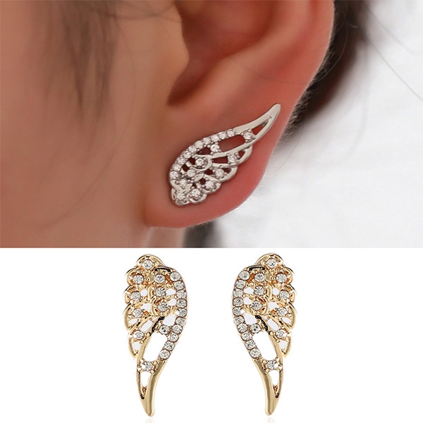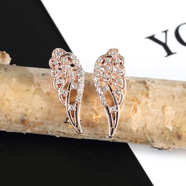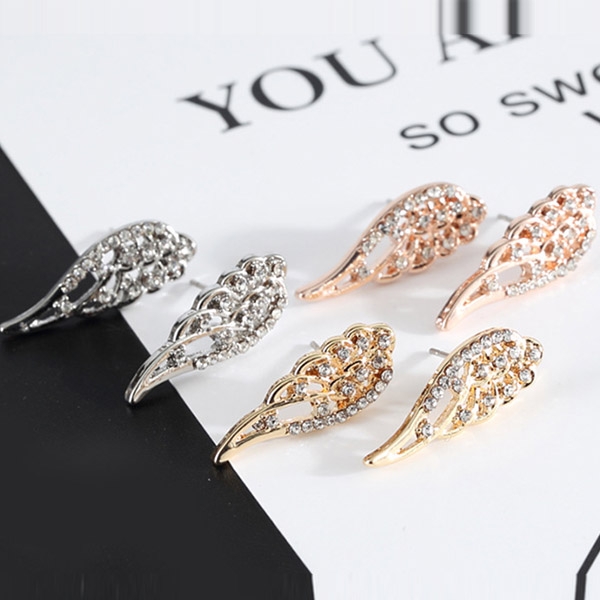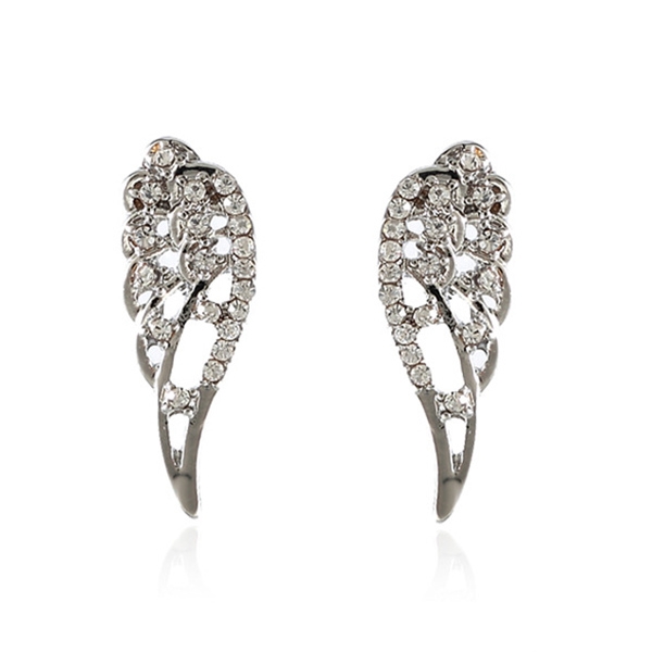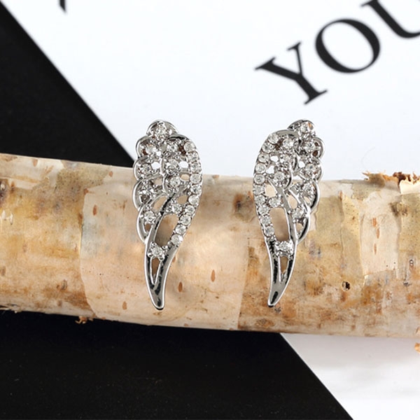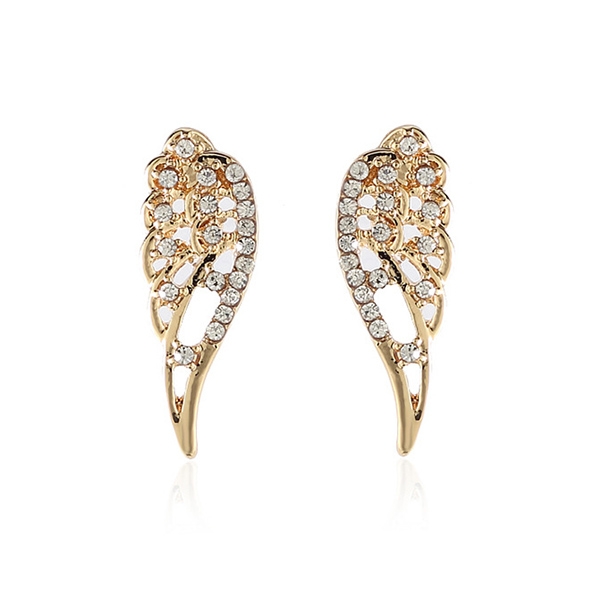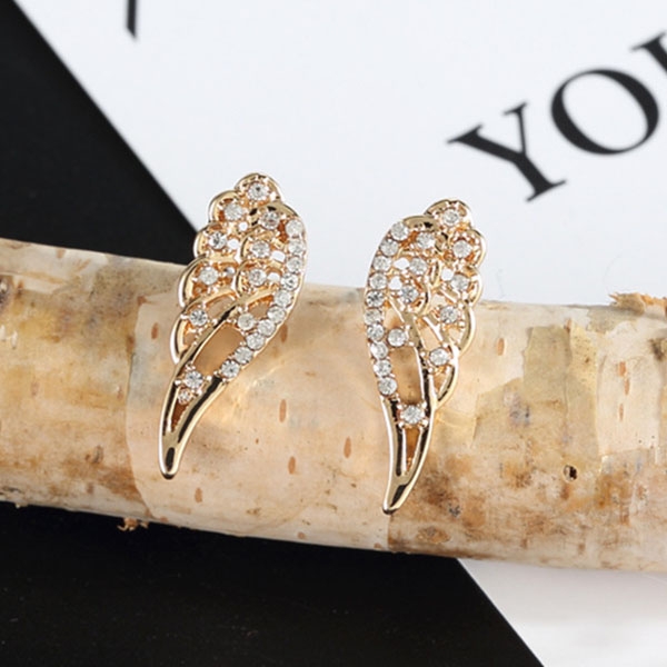 Fashion Rhinestone Hollow Out Angel Wings Ear Studs