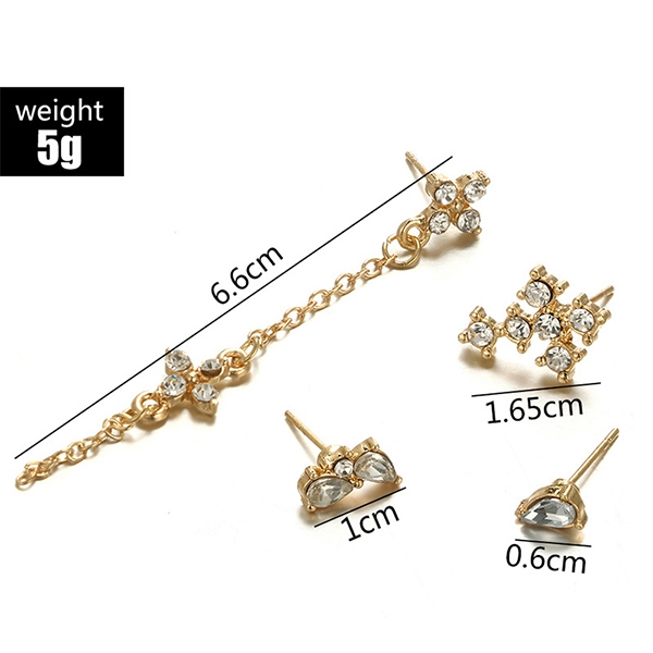 Fashion Rhinestone Inalid Cross Tassel Earring Set 4 pcs/Set