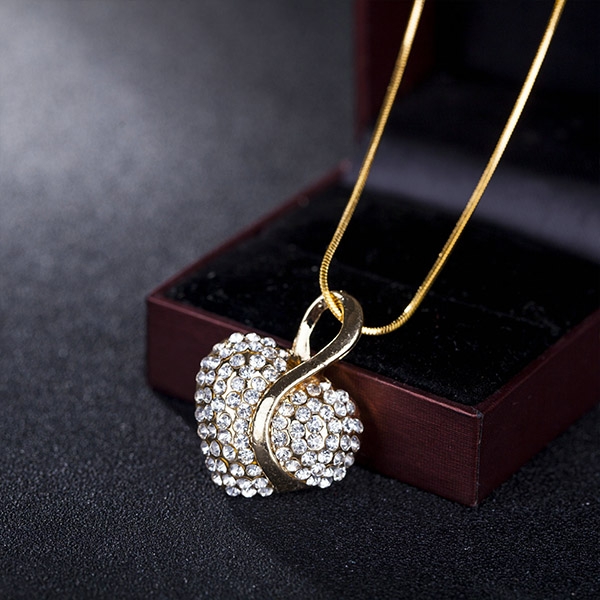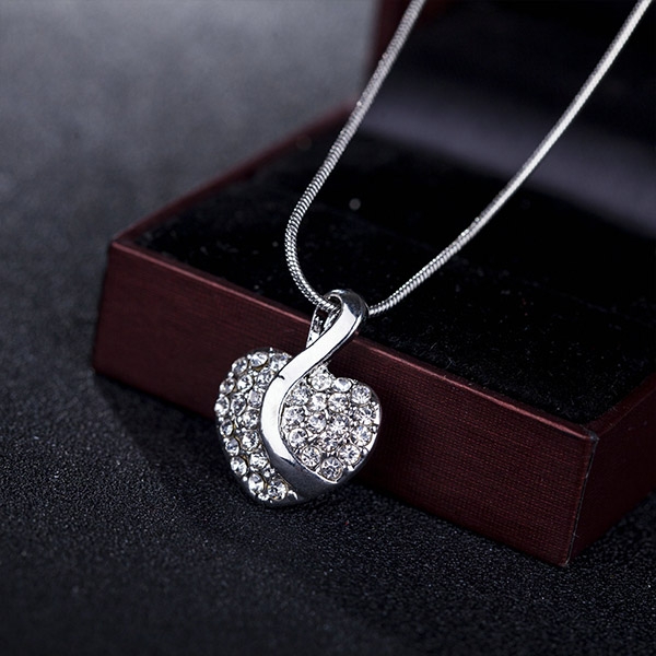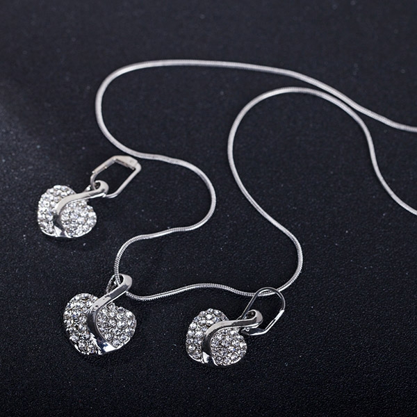 Fashion Rhinestone Inalid Heart Pendant Necklace + Earrings Set