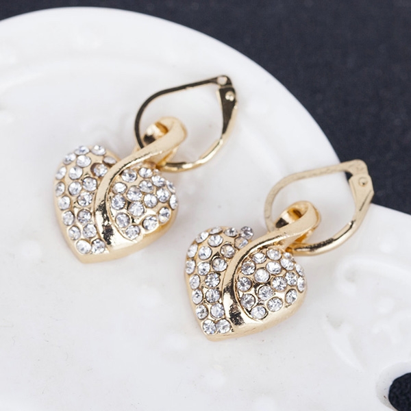 a pair of earrings,decorated with a heart pendant,which is inlaid with rhinestone details,