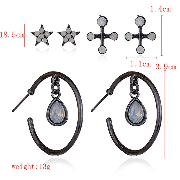 Fashion Rhinestone Inalid Stud Earring Set 3 pair/Set