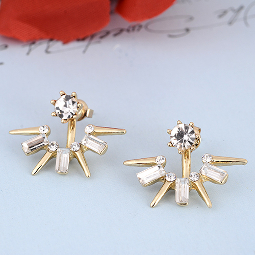 Complete your stylish look with the help of this pair of stud earrings. Unique shape design,inlaid with rhinestone,this pair of stud