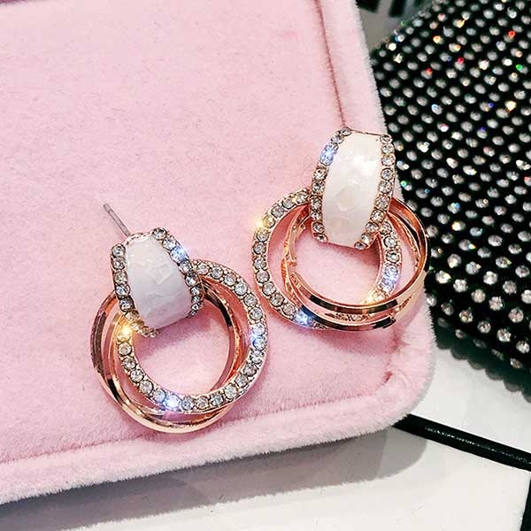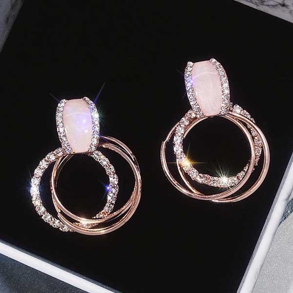 Fashion Rhinestone Inlaid Circle-shaped Earrings