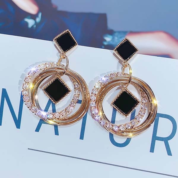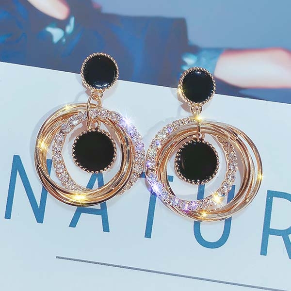 Fashion Rhinestone Inlaid Circle-shaped Earrings