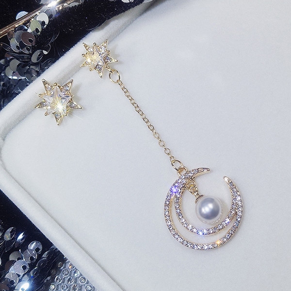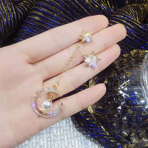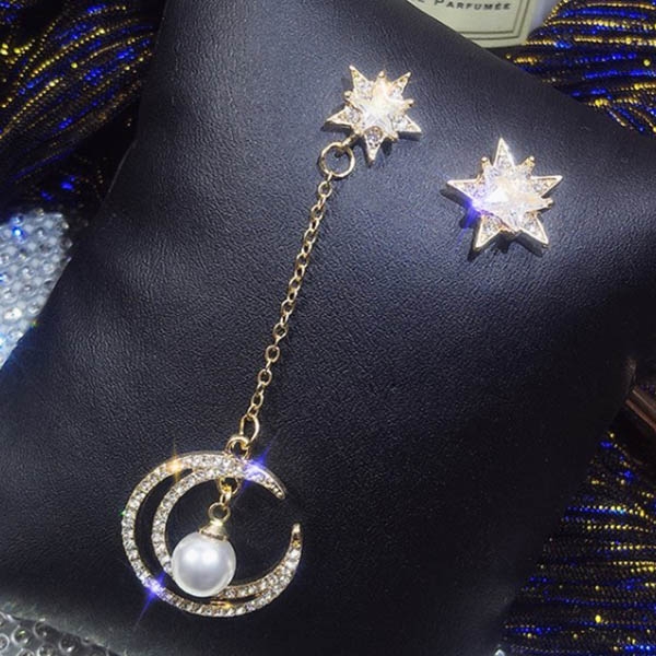 Fashion Rhinestone Inlaid Crescent Asymmetric Star Earrings