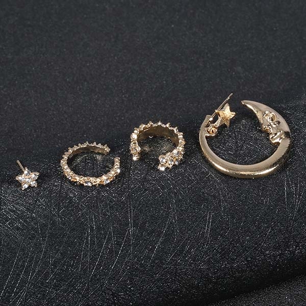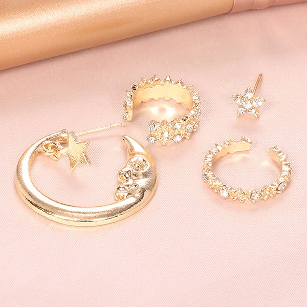 Fashion Rhinestone Inlaid Crescent Shaped Stud Earring Set 4 pcs/Set