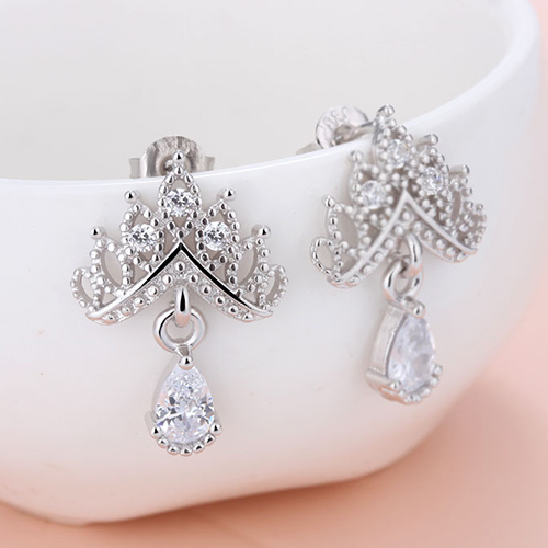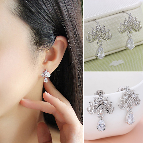 These stud earrings are the perfect accessory for any occasion. Crown shaped design,inlaid with